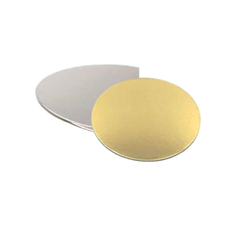 Lámina Redonda Cartón Oro/Plata 200mm. Paquete 100 unidades.
